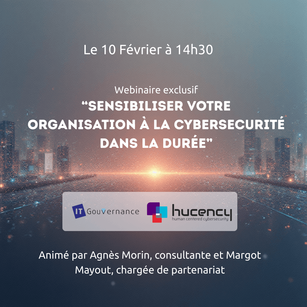 Le webinaire sera co-animé par Margot Mayout (Hucency) et Agnès Morin (IT Gouvernance), qui présenteront à la fois la solution et l’accompagnement proposé pour assurer son déploiement, son adoption et son intégration dans la gouvernance de l’organisation.